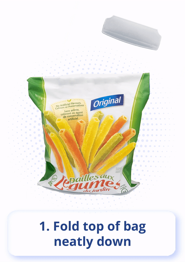 Where beauty meets function. No clunky and floppy handled clips here. Our clips have a sleek, modern, and innovative design that naturally fits over the fold of the bag. Simply fold down the bag to the bottom of your food and snap tight!